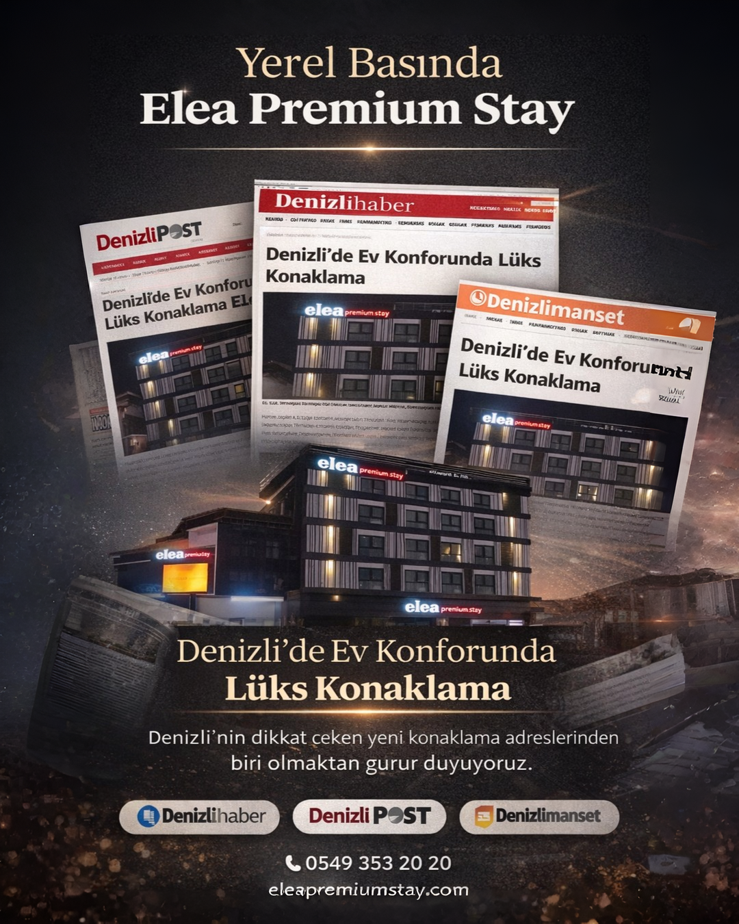 Denizli’nin en prestijli konumlarından birinde yer alan Elea Premium Stay, konaklama anlayışını bir adım öteye taşıyarak misafirlerine tam donanımlı bir rezidans deneyimi sunuyor. Şehir dışından gelen iş insanları için verimli bir çalışma ortamı, aileler içinse güvenli ve ferah bir yuva konforu sağlamak temel önceliğimizdir.